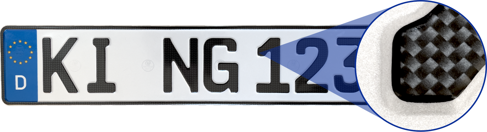 Unsere Kennzeichen mit Carbon-Optik sind uneingeschränkt für den Straßenverkehr zugelassen.Sie können hier das Zertifikat herunterladen, um es gegebenenfalls bei der Zulassungsstelle vorzulegen.
